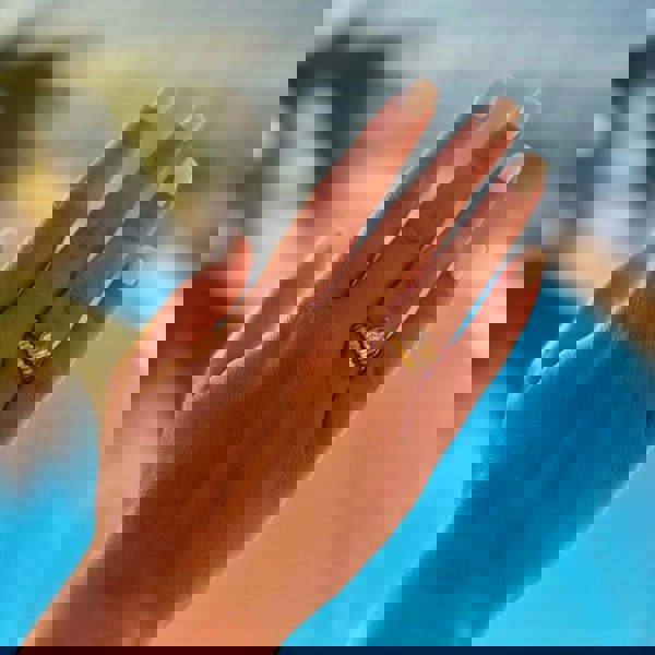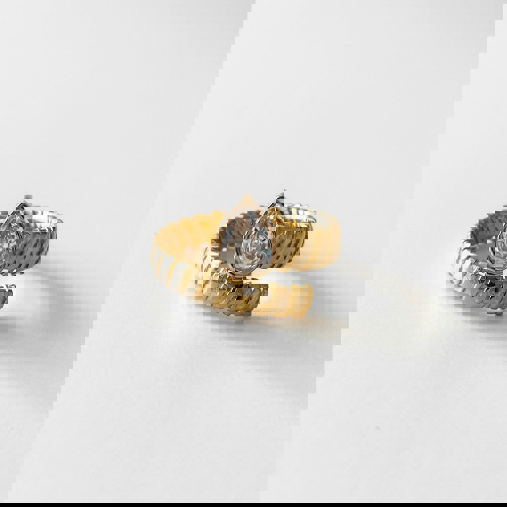 Bold and unusual the Kali Luxe ring features a textured wraparound band design with an exquisite teardrop shaped clear stone.