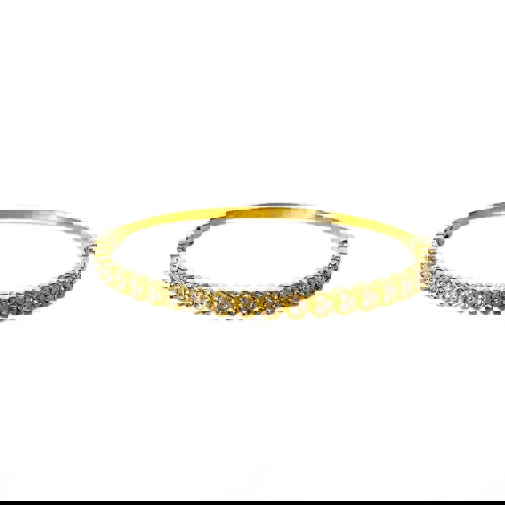The Lana Luxe bracelet delivers refined sparkle with a row of clear jewelled accents set in an 18k gold plated stainless steel band. Designed with a secure hinged closure, it slips on with ease while maintaining a sleek and polished fit on the wrist.