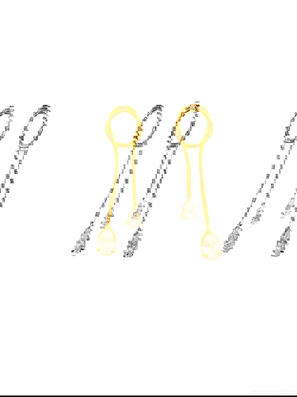 Elevate your jewellery collection with these statement gold snake chain drop earrings, designed to add effortless elegance to any look. Crafted with fluid snake chains that create graceful movement, each earring features a dazzling teardrop-cut crystal set in a polished gold-tone finish.