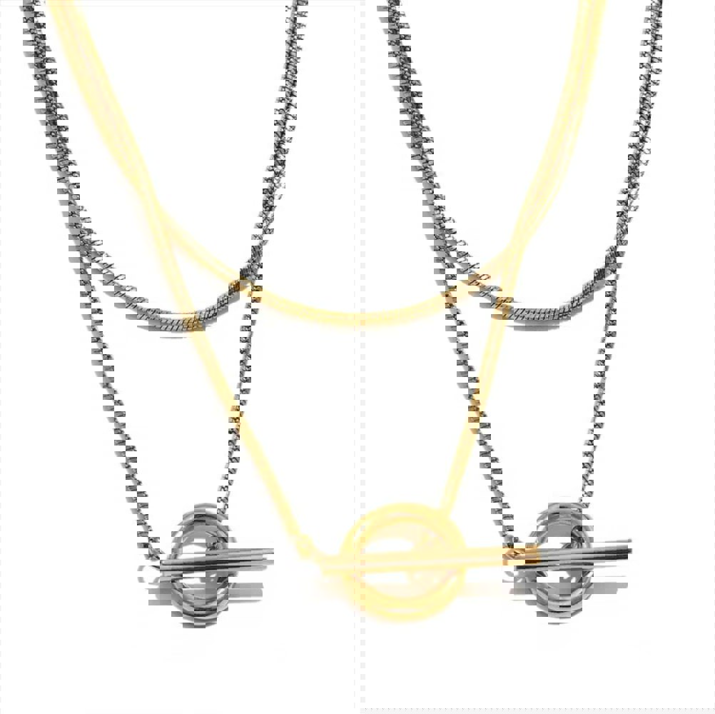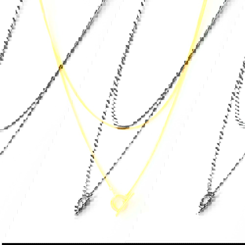 Elevate your style with the Matilda Luxe necklace, featuring a sleek wraparound design crafted from 18k gold plating. This modern yet timeless piece showcases a minimalist T-bar fastening and layered snake chain details, offering effortless elegance for any outfit. Perfect for layering or wearing solo, it’s an eye-catching accessory for both casual looks and formal occasions. Add a touch of luxury to your jewellery collection with this versatile statement necklace.