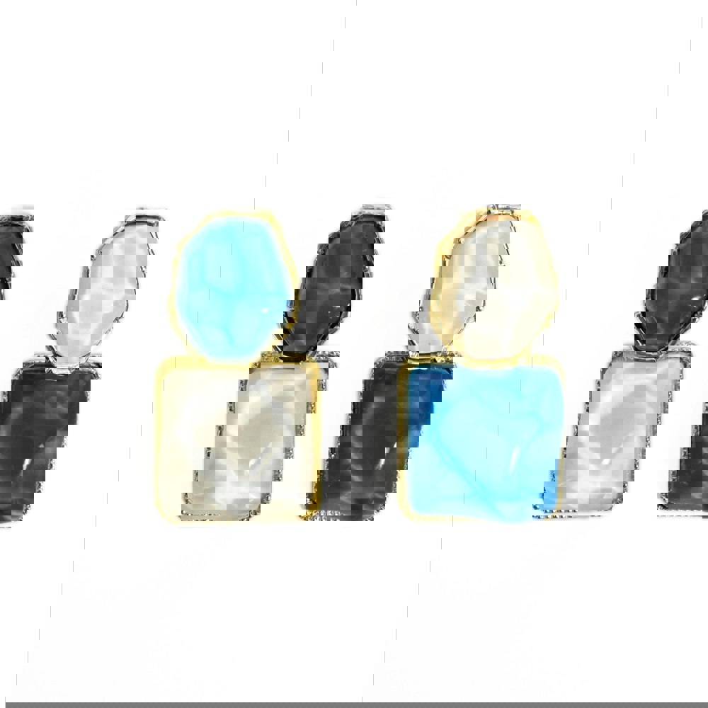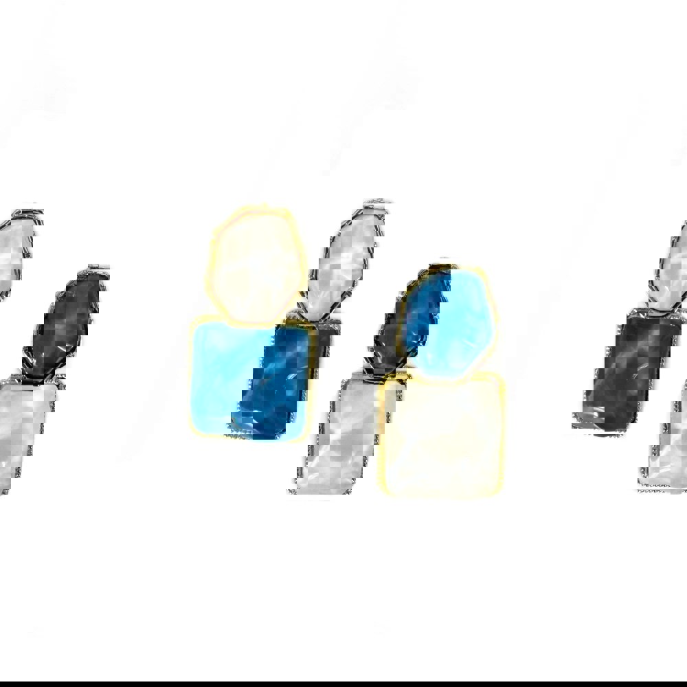 Make a statement with these bold and playful cobalt and Ivory drop earrings. The perfect pop of colour for your accessory collection. Featuring a glossy, marbled finish and modern mismatch design, these earrings add that little something extra to any outfit.