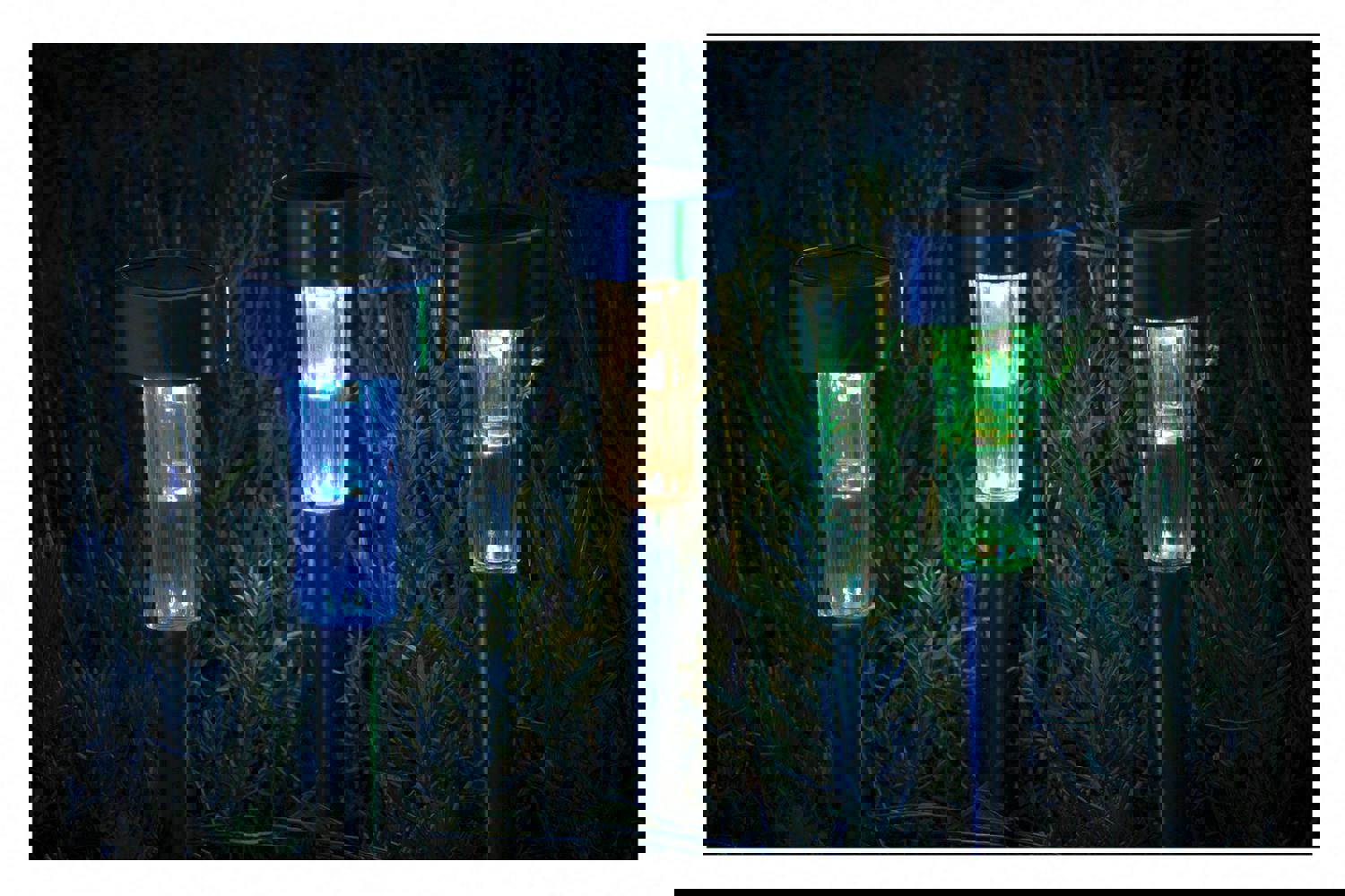 Decorate your outdoor living space even in remote areas by placing these stylish lights in a sunny spot, they will enhance the look and feel of any garden. This solar light is made from durable stainless steel and can also be used to provide ambient light sufficient to illuminate paths, borders and driveways etc. The light has an on/off switch and an integral solar panel. This attractive IP44 rated energy saving LED Solar spike light uses the integral solar panel to recharge the AA battery throughout daylight hours using free energy from the sun, once charged it will provide up to 8 hours of light. When dusk falls, the light will automatically turn on and turns off again at dawn. This particular light utilises both soft tone and colour changing RGB-LEDs. Easy to install with no wiring required, just use the supplied spike and push into the ground!