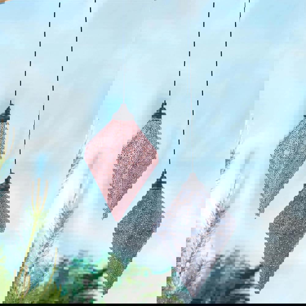• Solar Garden Hanging Light Oriental design Available in blue or pink No wires!