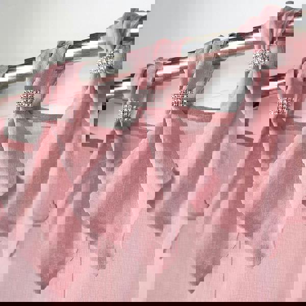 Designed to bring a refined finish to everyday interiors, the Luxury Living Linen Look Voile Tab Top Curtain Pair combines a modern decorative detail with the soft, light feel of voile. A flag-style tab top creates a clean, contemporary hang, while the diamante collar adds a subtle sparkle that catches the light without overwhelming the room.