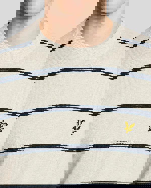 A clean, everyday layer from Lyle & Scott, the Cotton Striped Mens Crew Neck Jumper comes in D24 light grey marl with a striped finish. Made with a 100% cotton body, it offers a straightforward option for menswear wardrobes, working well as a crew neck knit for regular rotation.