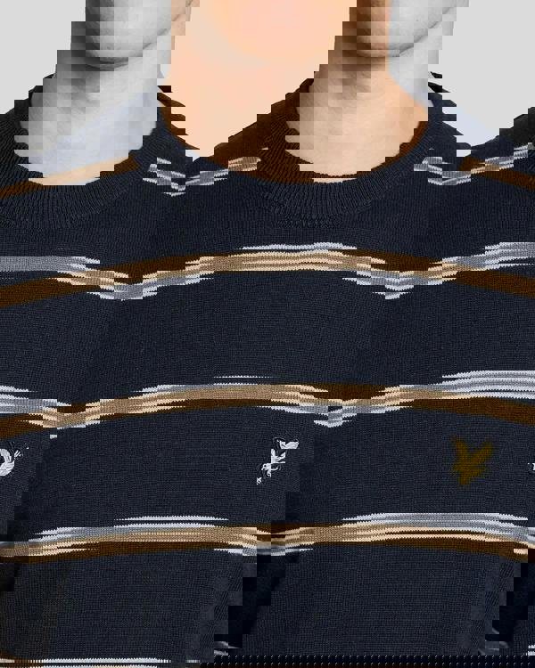 Clean stripes and a classic neckline define the Lyle & Scott Cotton Striped Mens Crew Neck Jumper in Z271 Dark Navy. Made with a 100% cotton body, this men’s jumper offers an easy option for everyday wear, whether layered over a shirt or worn on its own. The crew neck finish keeps the look simple and versatile, while the dark navy colourway works across casual wardrobes.