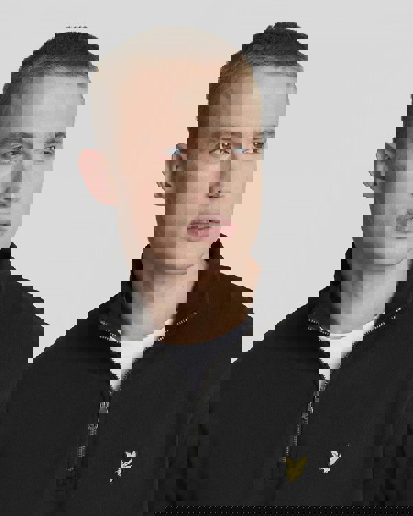 Lyle & Scott Mens Embroidered Quarter Zip Sweatshirt in Z865 Jet Black