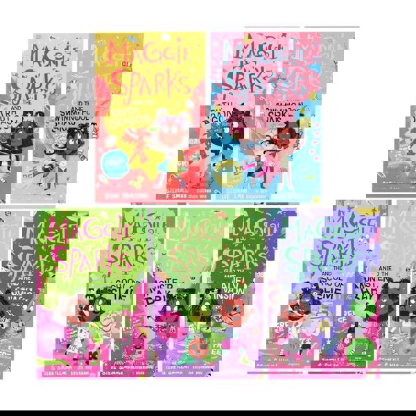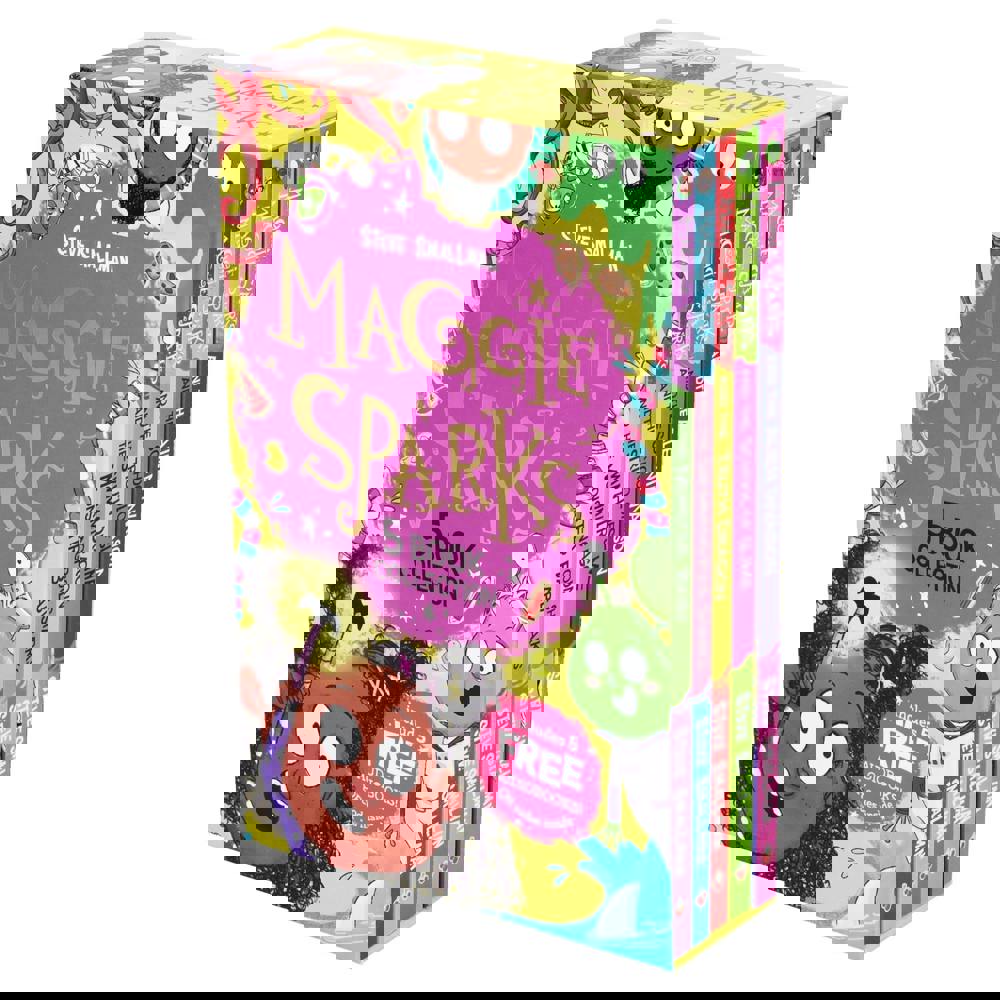 Maggie Sparks Series 5 Books Collection Set: A Witch and her Adventures with Aliens, Monsters, Slime and more by Steve Smallman brings together five stories featuring Maggie Sparks. This set is presented as a five-book collection, with “Free Audio Book Inside” noted for each included title.
