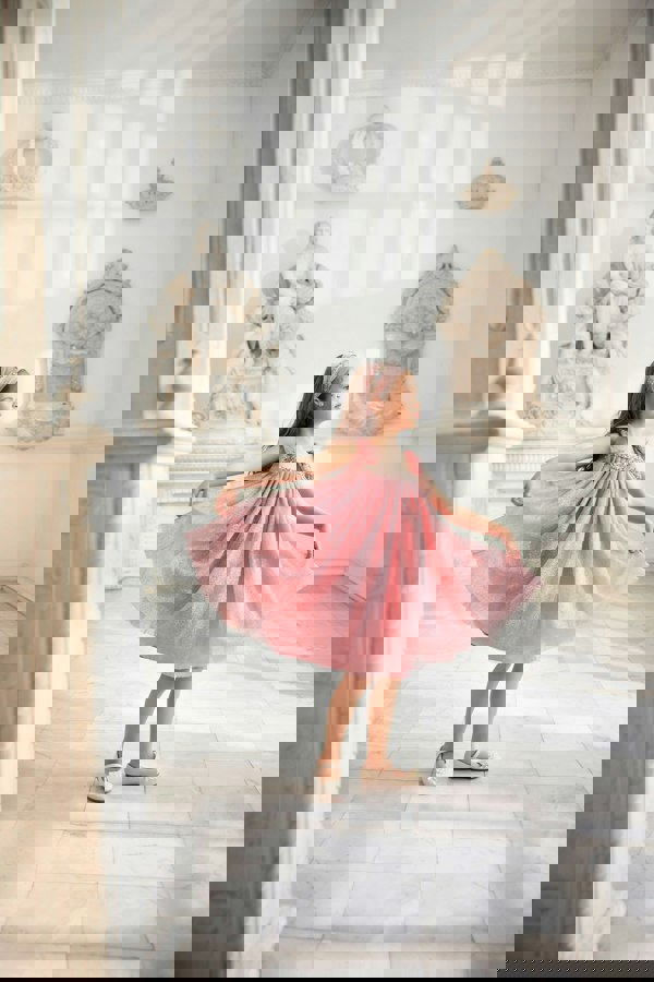 This girls pink ballerina-style occasion dress from Maison Ava pairs intricate net with a layered, netted construction. Rhinestones and diamante sequins add sparkle, while tulle bows and a square neckline complete the look. The dress is fully handmade in the brand’s atelier and fastens with a zip-up closure.