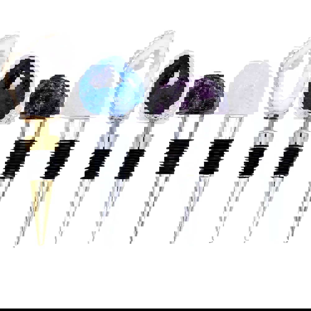 Each stopper features a unique natural gemstone offering both functionality and sophistication:
