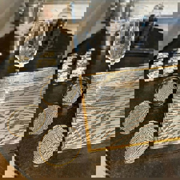 The tray and coasters also serve as a stylish base for a dining room centrepiece topped with candles, a decorative adornment for a hallway table or even a way to store makeup on top of your vanity table