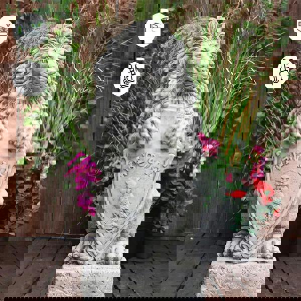 Stone cast large regal lion with shields in keeping with their classic heritage highly recommended for entrance décor, massive garden landscapes, impressive gateposts, and commercial building entrances. The shield has WELCOME sign written on. Absolutely solid and set on a deep, heavy concrete plinth that makes them extremely stable and freestanding.