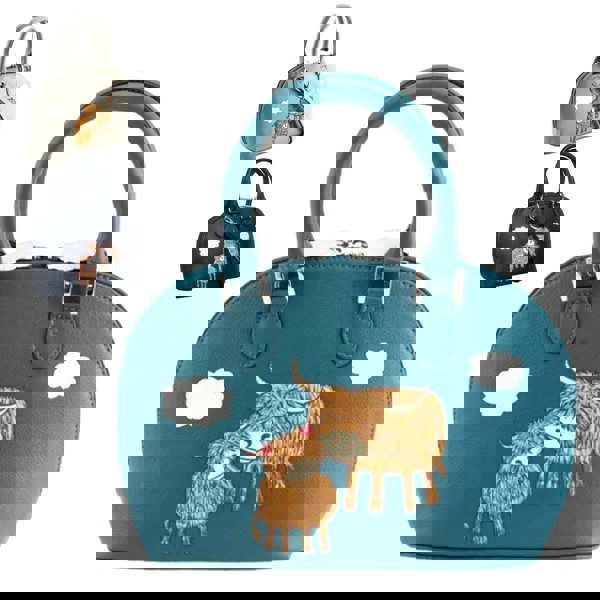 Handcrafted from genuine, high-quality leather, this medium-sized handbag features a delightful mother-and-calf Highland cow appliqué, adding a touch of charm and character to your look.