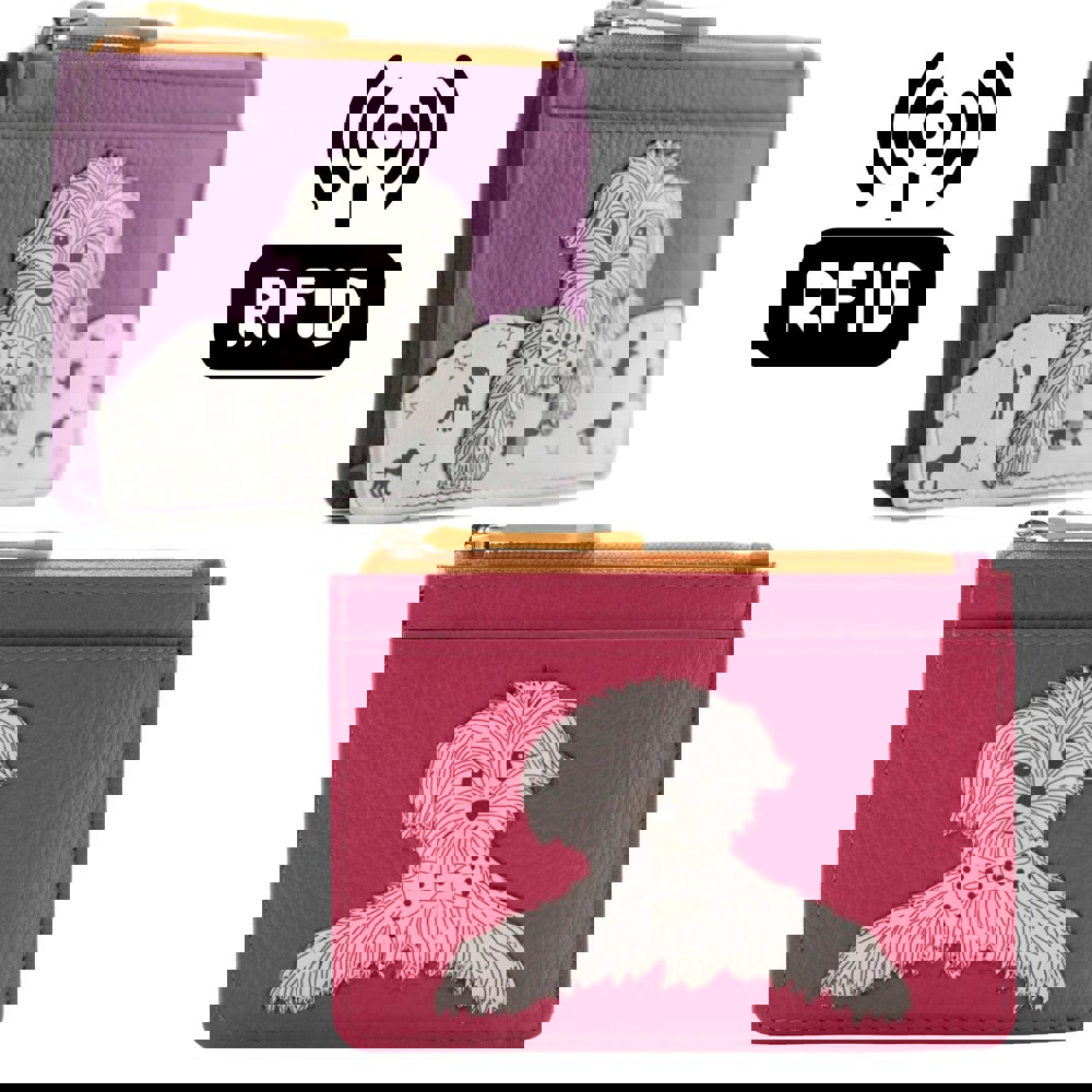 Crafted from soft leather, this compact purse from Mala Leather features an adorable appliqued puppy design. A practical yet playful accessory, it combines a coin compartment with convenient card storage, making it ideal for everyday use.