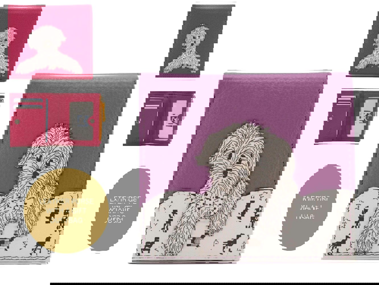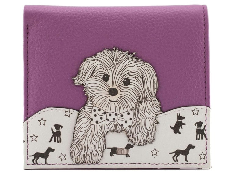 The Coco Puppy Compact Purse by Mala Leather offers a delightful blend of personality and practicality. Crafted from soft pink genuine leather, this charming design is brought to life with a carefully stitched dog appliqué on the front – ideal for dog lovers or those who enjoy playful accessories.