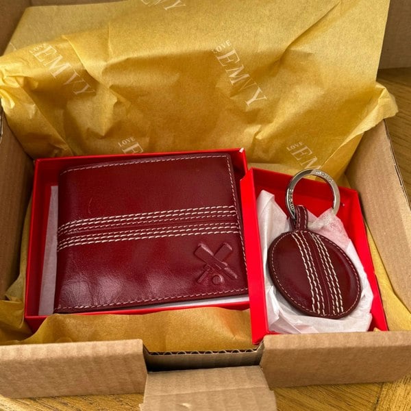 Celebrate classic style with the Love EMVY Cricket Gift Set, thoughtfully curated for those who appreciate both quality and craftsmanship. This elegant set combines a genuine leather RFID bifold wallet with a hand-stitched cricket ball keyring, creating a versatile and timeless gift.