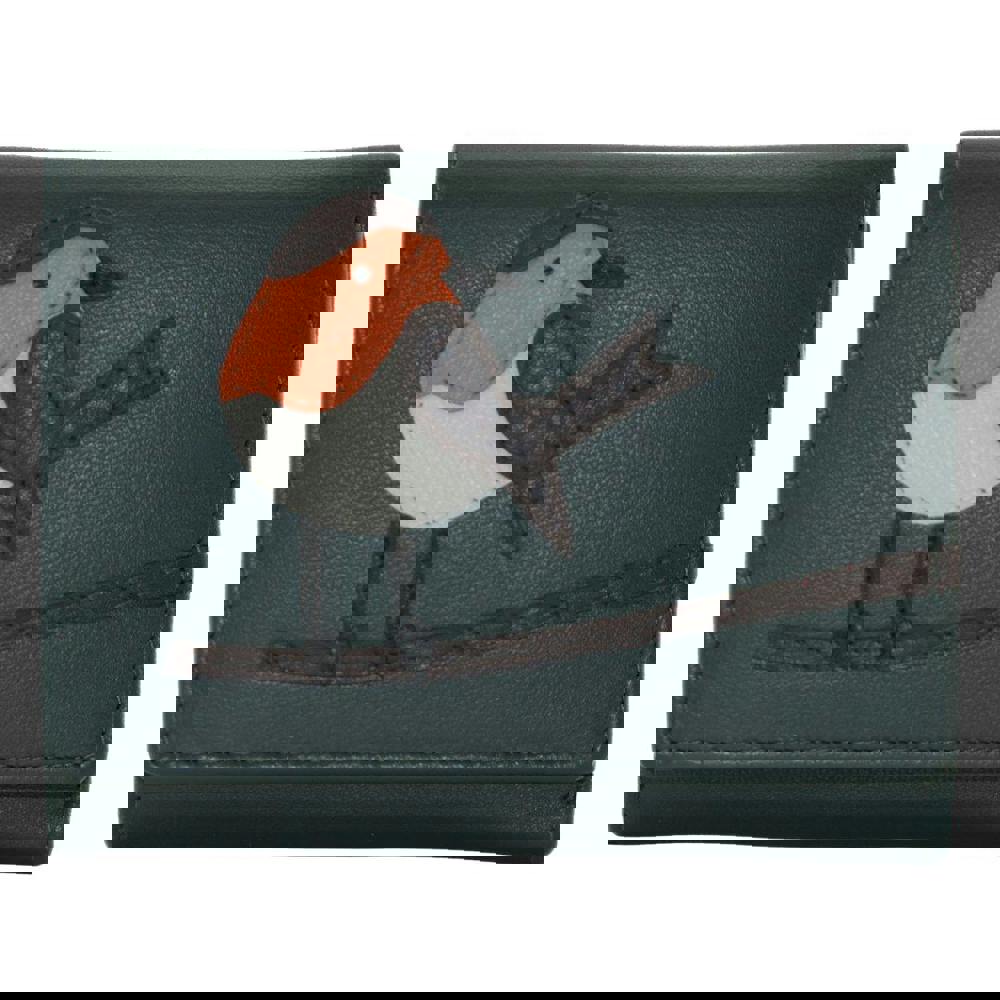 This charming tri-fold purse from Love EMVY is crafted in soft dark green leather and decorated with a delightful robin applique, adding a warm, nature-inspired touch to an everyday essential.