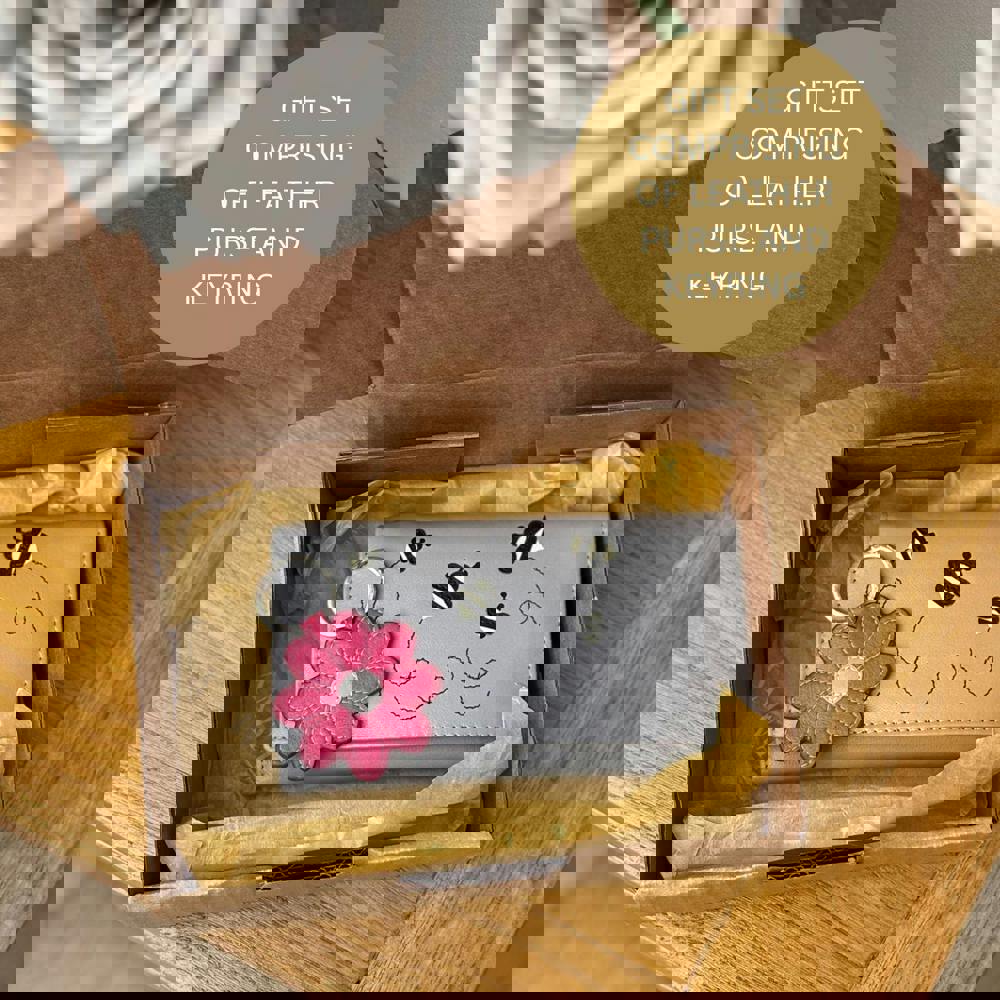 A beautifully presented Mala Leather Bee Purse and Daisy Keyring Gift Set, thoughtfully gift-packed by Love EMVY Ltd. This elegant combination of quality craftsmanship and charming design makes it the perfect gift for birthdays, Christmas, Mother’s Day, or thank-you occasions.