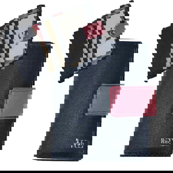 Inside, the purse offers well-organised storage including multiple card slots, slip pockets, an ID window and a dedicated note section. A zipped coin pocket keeps change secure, while built-in RFID protection provides added peace of mind when carrying contactless cards.