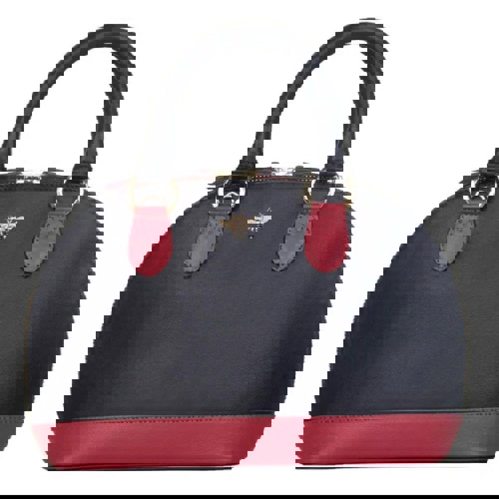 Expertly handcrafted from 100% genuine leather, this bag features a classic black body accented with bold red trim and a striking gold bee motif for a modern, elegant finish.