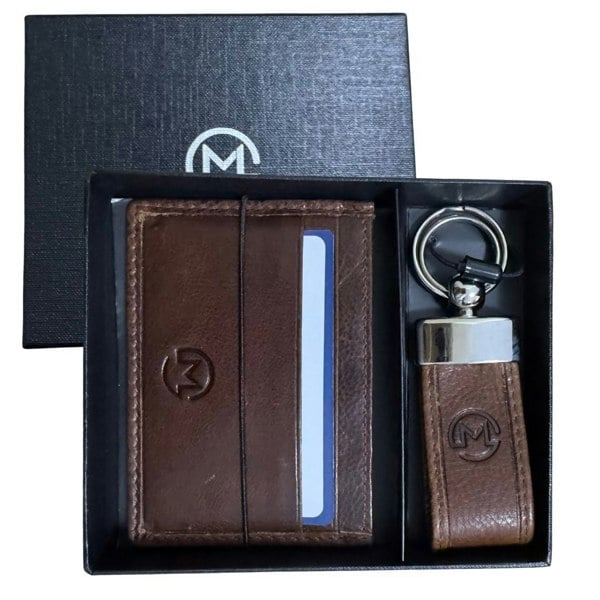Genuine leather men’s gift set with card holder and matching keyring Packaged in a premium gift box – ready to gift for any occasion Compact, lightweight, and ideal for daily use Classic colour options: Black or Brown Perfect for birthdays, Father’s Day, or Christmas gifts