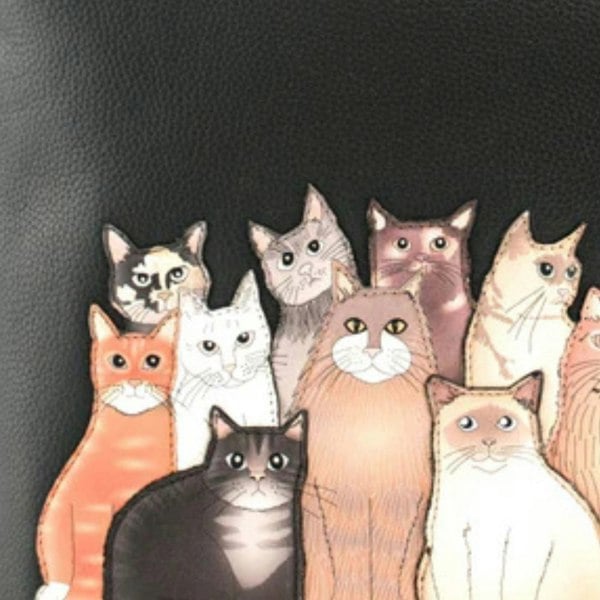 A slim and elegant crossbody bag from Mala Leather’s Meowfia collection. Crafted in soft dark grey genuine leather, the front is decorated with a playful mix of appliqué cats including a ginger tom, black, white, grey, and Siamese, making it a delightful accessory for cat enthusiasts. The bag offers practical organisation with an interior zip pocket, slip pocket, and a handy rear zipped compartment. Finished with an adjustable strap for comfort, it is both stylish and functional. Supplied in a branded dust bag, this bag also makes a thoughtful gift for any occasion.