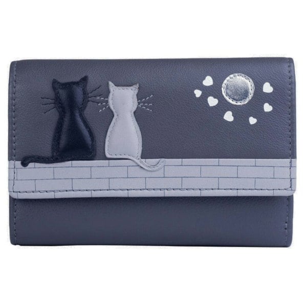 The Mala Leather Midnight Cats Trifold Purse combines timeless design with everyday practicality. Crafted from soft, genuine leather, it Key Features an elegant appliqué of two cats – one black and one grey – sitting beneath a subtle moonlit sky. The trifold layout provides generous storage for cards, notes and coins, while the built-in RFID protection ensures your personal information remains secure. Compact yet stylish, this purse is perfect for daily use and designed to last.