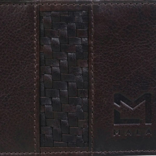 Handcrafted from genuine brown leather with a handwoven front panel for an elegant finish