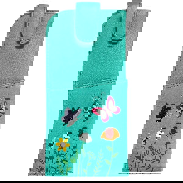A beautifully crafted glasses case from the Sophia Collection by Mala Leather, featuring a hand-stitched butterflies and flowers design on premium soft leather.