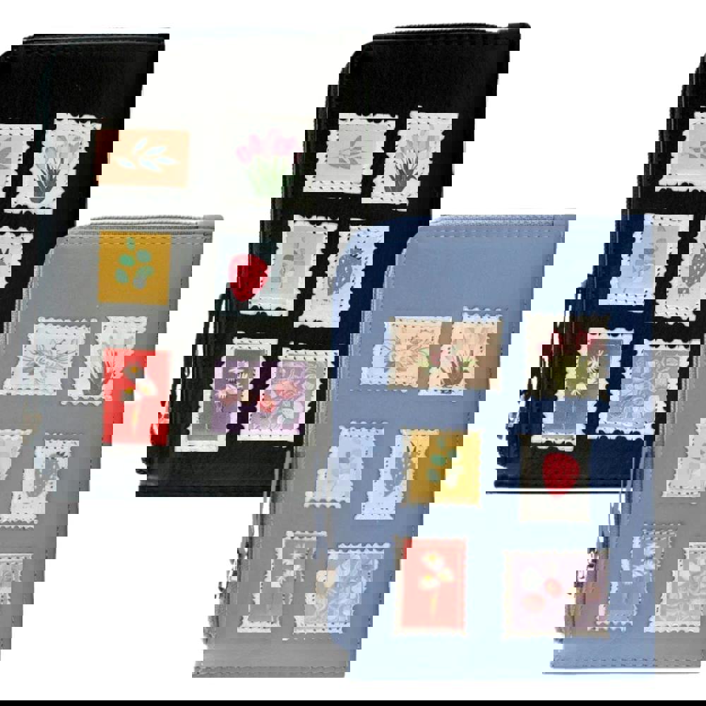 Part of the beautifully detailed Botanists Post Collection, this compact leather coin and card purse blends nostalgic postage-inspired design with delicate botanical artwork. Featuring decorative stamp-style appliqués with a picture-frame feel, it captures the charm of vintage letters and botanical illustrations — perfect for stamp collectors, plant lovers, botanical enthusiasts and artists who appreciate art and collage-inspired design.