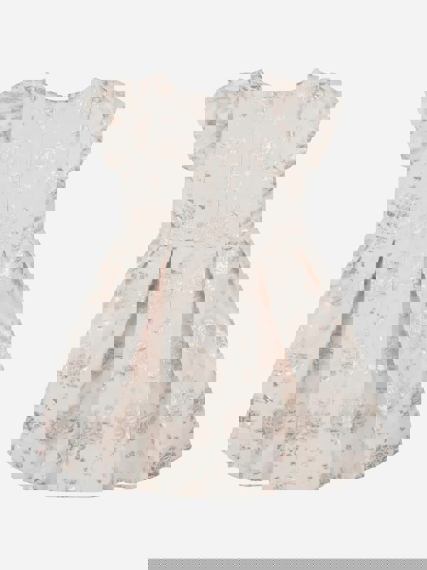 This girls’ jacquard occasion dress from Mama Luma comes in gold with sheer floral patterning and a pleated effect. An enlarged flower sits at the centre, adding a clear focal point to the design. Finished with a crew neck and an A-line hem, it fastens with a zip for a neat, secure closure.