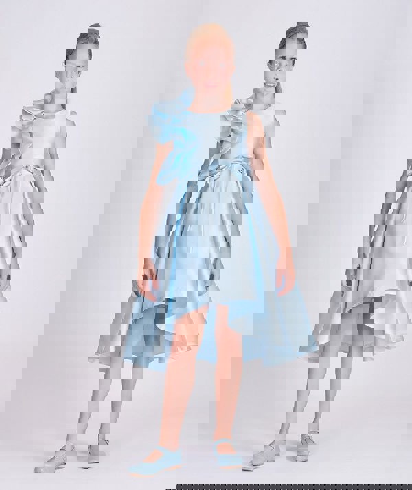 Mama Luma’s girls occasion dress comes in blue with a large bow detail. The design suits Eid occasions, with a white and blue colour combination stated in the product details. This piece is presented as part of Mama Luma’s designer range.