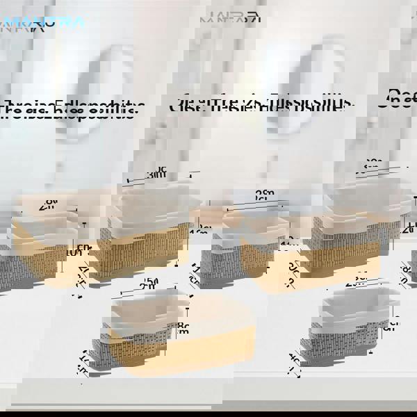 MULTI-PURPOSE USE : Ideal for organizing makeup, bathroom essentials, closet drawers, and cupboards. The 3 boxes in various sizes can be stacked - Natural. As shelf basket in your kid’s room - Decorative living room bin or bedroom organiser.