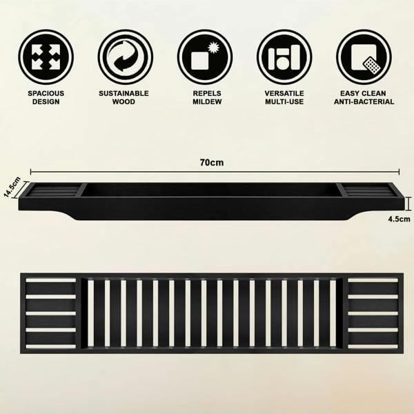 LOVELY BATHROOM ACCESSORY - This bathroom shelf Organizer is lightweight and has a modern and chic appearance - Matches any bathroom. High-grade high strength bamboo, which has been sourced naturally, has been used in its construction. The Bath Caddy bridge has then been finished in white making it a universal product for all decors. 70CM X 14. 5CM X 4. 5CM. Easy cleaning, just wipe with a damp cloth.