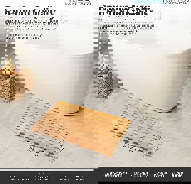 QUALITY CONSTRUCTION: MantraRaj Bamboo Bathroom Duckboard is made from durable, sustainable eco-friendly bamboo; Add a natural touch and go green; Bamboo naturally resists stains, odors and bacteria and it is eco-friendly; For best results, lean it up to allow water to drain away or dry completely after each use; Do not submerge in water