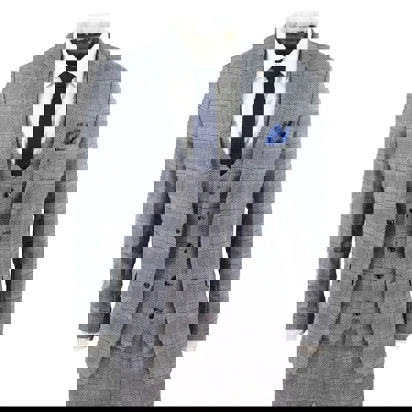 • Finished In a Royal Blue Prince Of Wales Checkered Birdseye Fabric Complete With Blazer Trouser & Waistcoat