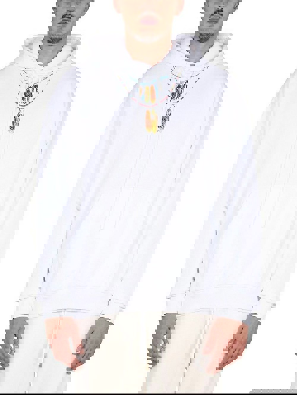 Marcelo Burlon County of Milan white/multicolour cotton feather print drawstring hood long sleeves straight hem ribbed cuffs front pouch pocket