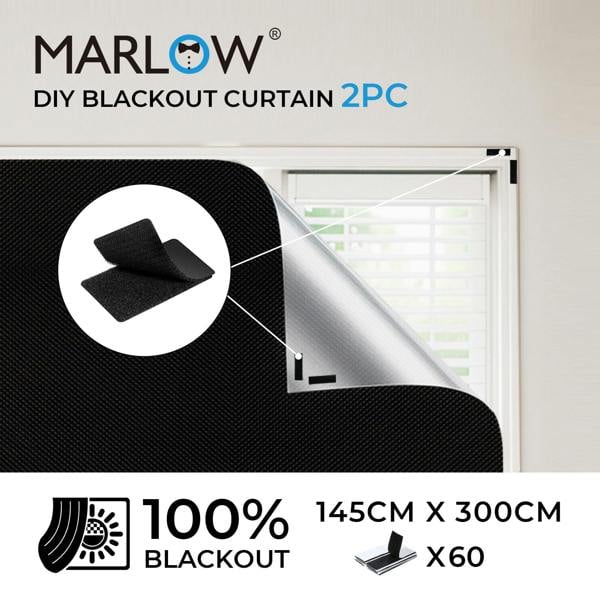 Experience full darkness and comfort with the Marlow 2PCS Blackout Blinds. Each panel measures 145×300cm and can be easily cut to fit standard irregular or uniquely shaped windows—ideal for bedrooms nurseries offices skylights and more. Made from triple-layer polyester with a silver-coated backing it blocks 100% light reduces heat and helps maintain indoor temperature all year round.