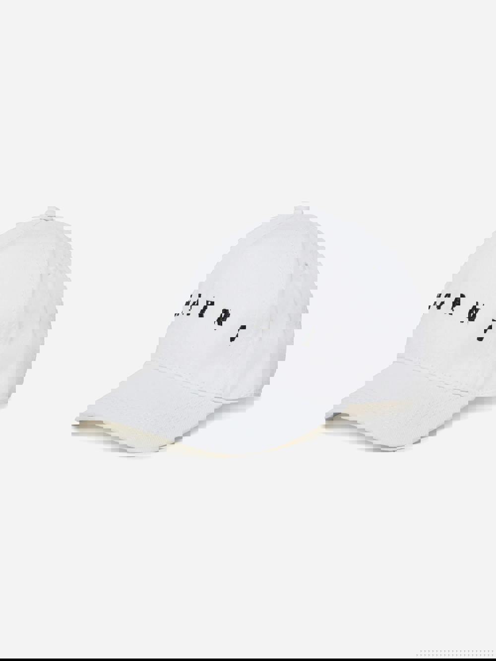 The Marni Kids logo cap comes in white for a clean, simple look. A prominent MARNI logo sits on the front, keeping the branding clear and easy to spot. Part of the SS2026 collection, this cap adds a designer finish to everyday outfits without extra detailing.
