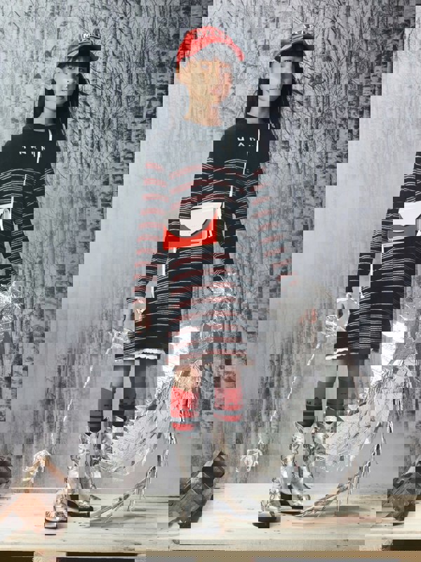 A simple silhouette and bold stripe pattern keep the focus on the fabric and design, making it an easy option for day-to-day wear or more dressed-up moments.