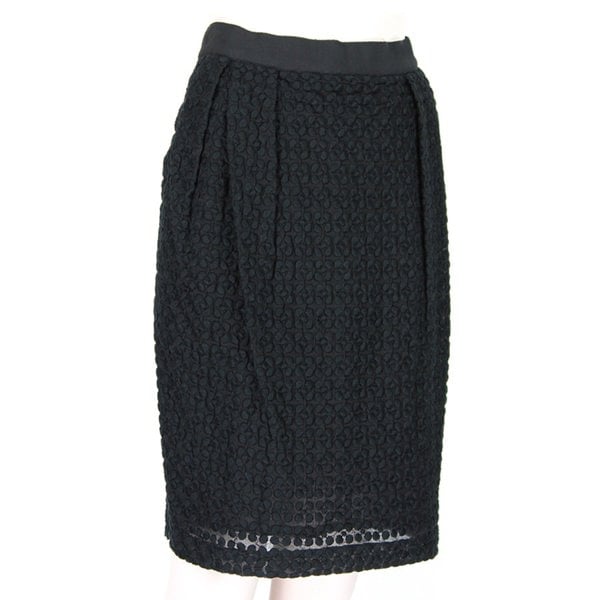 Martin Grant Black Monochrome Floral Embroidered Pencil Skirt