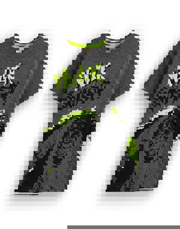 Envision your mini superhero standing tall, inspired by the classic Marvel logo on one shirt and unleashing their inner Hulk with the iconic "Hulk Smash" on the other