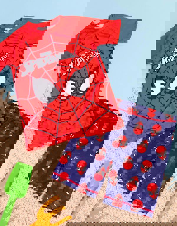 Splash around in style with your favorite superhero, Spider-Man! This Marvel two-piece set comes with a t-shirt and shorts that are perfect for kids who love comics and the 2021 Spider-Man: No Way Home movie