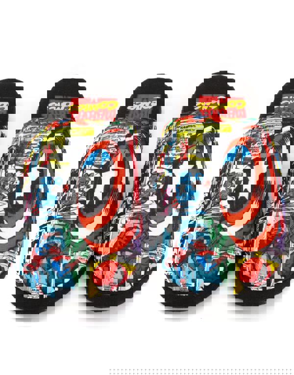 The house shoes come in a vibrant retro comic book style featuring the classic Marvel characters Captain America, Iron Man and Spider-Man