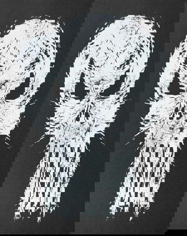 The design across the front of the t-shirt showcases the iconic Punisher logo