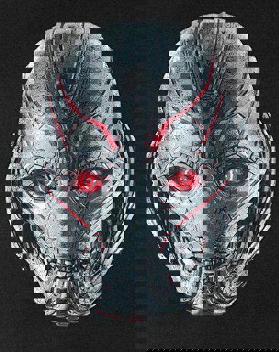 The large print across the front of the t-shirt showcases the head of supervillain and Avengers arch-nemesis Ultron