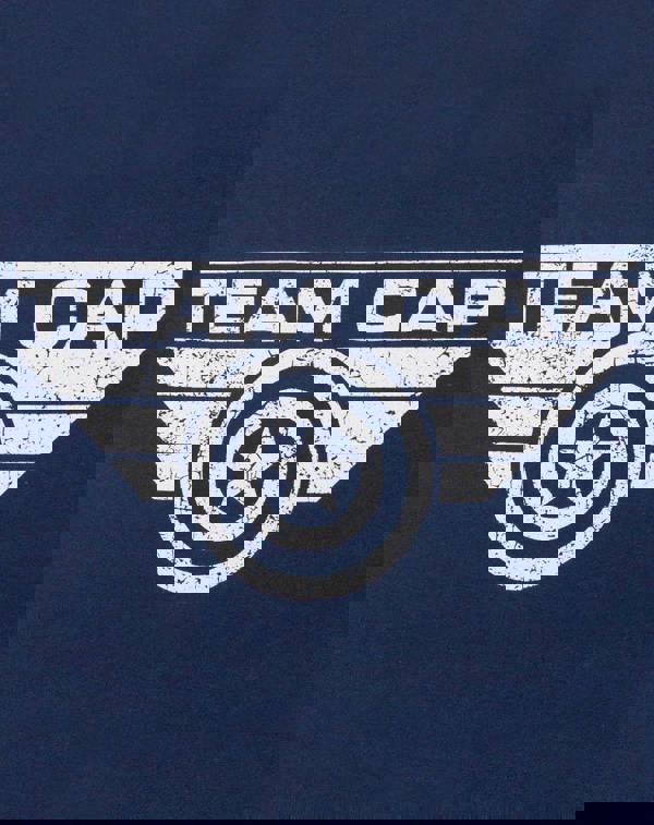 Packed with detail, the eye-catching print across the front of the garment features the Captain America crest headed by the slogan "Team Cap" combined with a subtle overall distress to cement this as a standout piece for superhero fans! Made from 100 percent cotton, this t-shirt offers a regular fit with a crew neck and short sleeve combination, and comes in navy blue