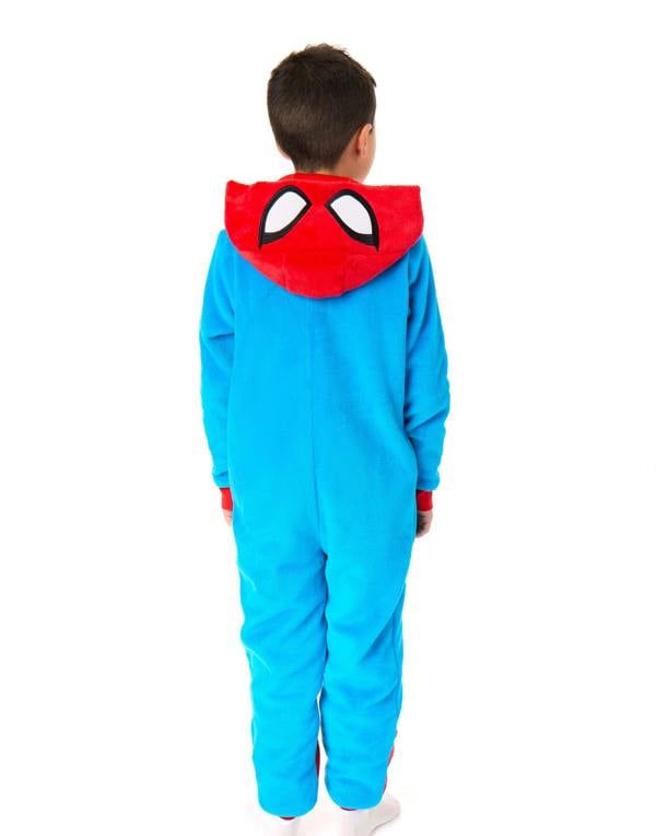 Bring a favourite Marvel character into the bedtime routine with the Marvel Unisex Kids Blue Character Onesie. This hooded sleepsuit comes in a vibrant blue and is finished with bold Spiderman character graphics for a standout look.