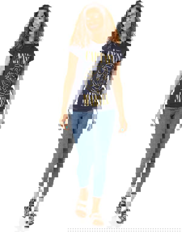 Be a hero in style with this Marvel Captain Marvel Print and Shield Womens Navy t-shirt