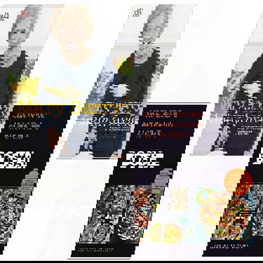 This hardback two-book collection brings together two approachable cookery titles: Mary Berry Cookery Course and BOSH! The Cookbook. Designed to support confident home cooking, the set spans classic foundations alongside plant-based meals, with a wide range of recipes across everyday dishes and sweet bakes.